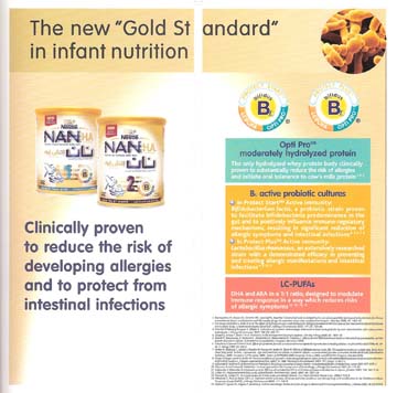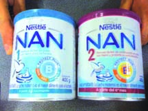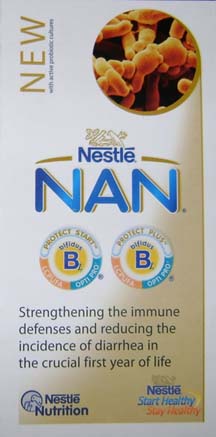 Left: Nan 1 (infant formula) and 2 (follow-on milk) with almost identical packaging and protect plus claim - on sale in Santiago, Chile, November 2010.