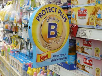 The ‘protect’ logo is also used on complementary foods to be cross-promotional and is used in point-of-sale advertising, here in the Philippines in November 2010. While Nestlé refuses to stop these practices, Nestlé’s Global Public Affairs Manager did eventually agree to stop point-of-sale promotions such as that in Malawi (below).