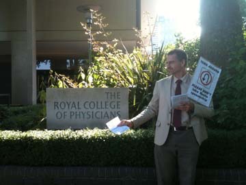 Nestlé has entered the UK formula market and aggressive marketing practices - and underhand tactics - familiar to those monitoring its practices around the world are now being seen here. Nestlé booked the Royal College of Physicians (RCP) for an event targeting health workers on 9 July 2013 under a different name, Baby Milk Action was told, otherwise the RCP would not have accepted the booking. Baby Milk Action handed out leaflets on conflicts of interest to those arriving for the event on obesity in pregnancy and infancy. The next event in the series, scheduled for 11 July in Birmingham, is today shown as 'cancelled' on Nestlé's site promoting the events.